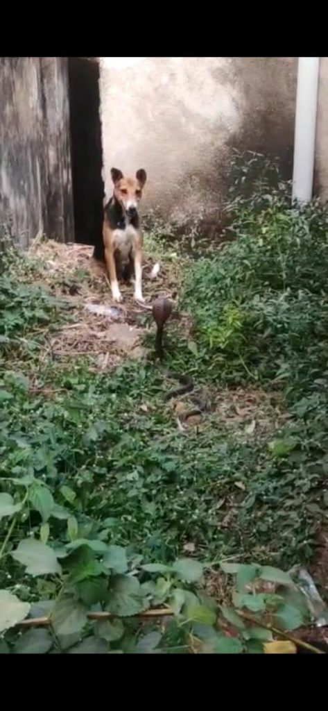 अपने बच्चों को बचाने के लिए कुतिया जहरीले कोबरा नाग से भिड़ी और बच्चों को बचाने में सफल रही