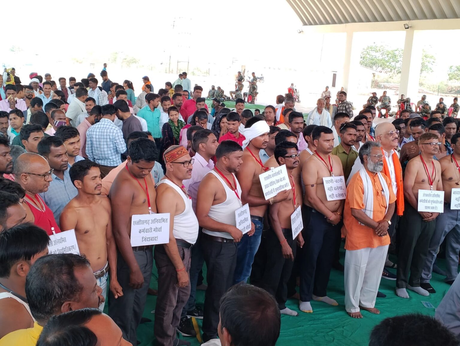 छग के विद्युत वितरण कंपनी के मीटर रीडर ठेका प्रथा समाप्त कर नियमितिकरण करने हेतु नवा रायपुर धरना स्थल तूता में धरना प्रदर्शन किए