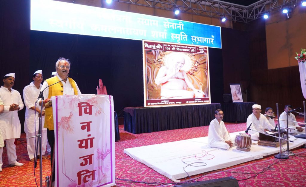 राष्ट्र संत शिरोमणि आचार्य विद्यासागर महाराज को आज राजधानी रायपुर के शहीद स्मारक में विनयांजलि दी गई। कार्यक्रम में संस्कृति मंत्री ने आचार्य विद्यासागर महाराज के नाम पर जल्द ही पुरस्कार की स्थापना, विद्यापीठ और आदर्श गौशाला निर्माण के लिए भूमि उपलब्ध कराने की घोषणा की। कार्यक्रम का आयोजन सकल जैन समाज द्वारा किया गया। कार्यक्रम में सांसद श्री सुनील सोनी,  विधायक श्री राजेश मूणत और श्री पुरेंद्र मिश्रा सहित सर्वसमाज प्रमुखों द्वारा आचार्य श्री को विनयांजलि दी गई।