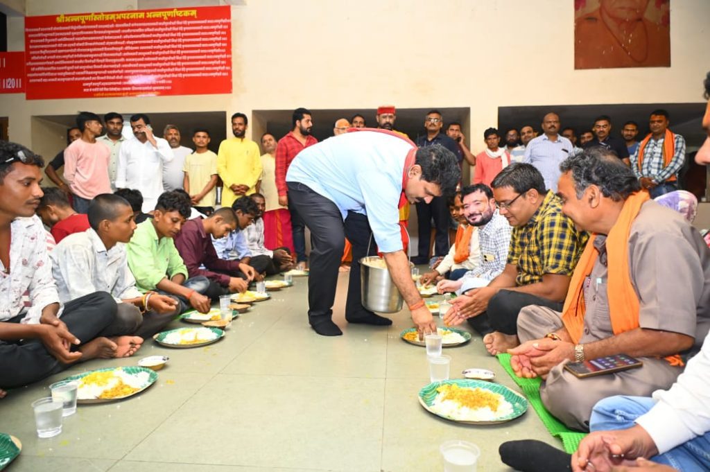 उपमुख्यमंत्री ने कांवड़ियों को किया भोजन का वितरण और साथ में बैठकर किया भोजन
