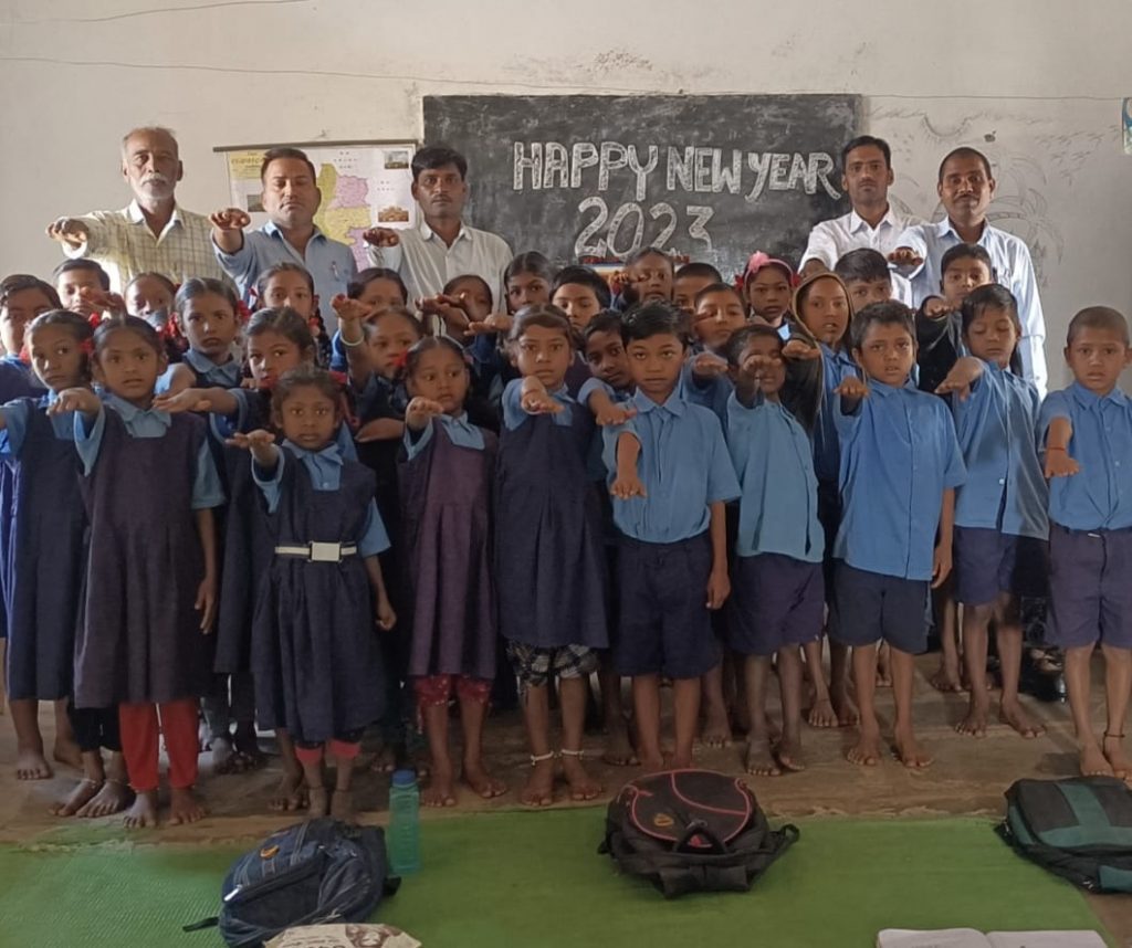 कट्टाहा नवागांव में प्राथमिक शाला के बच्चों ने शिक्षकों के साथ मनाया नववर्ष की खुशी