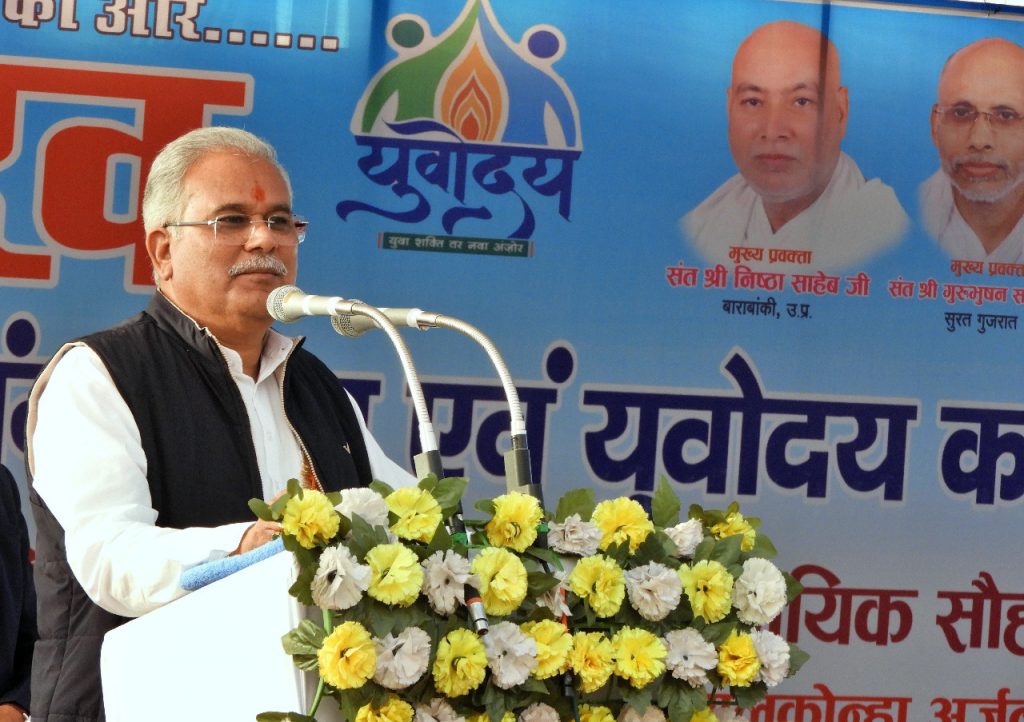 मुख्यमंत्री ने भालूकोन्हा में कबीर सत्संग भवन, अहाता निर्माण, सी.सी.रोड निर्माण एवं सामुदायिक भवन निर्माण की घोषणा की