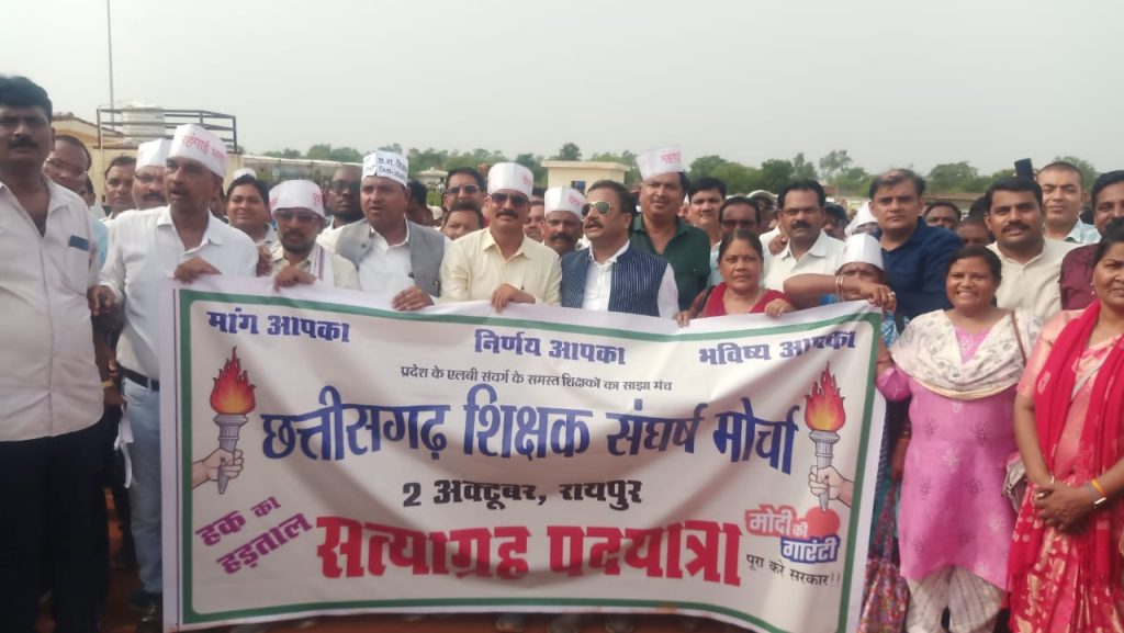 छग शिक्षक संघर्ष मोर्चा आज् के सत्याग्रह पदयात्रा मे चंद्रशेखर तिवारी ,धर्मेश शर्मा, कृष्णराज पाण्डेय,घनश्याम पटेल भानु डहरिया सुधीर प्रधान,बसंत चतुर्वेदी मनोज सनादय् ,बसंत कौशिक,रविंद्र राठौर ,हेम साहू,गंगा शरण पासी ,गिरीश साहू,उमा जाटव आदि हजारो शिक्षक शामिल्।