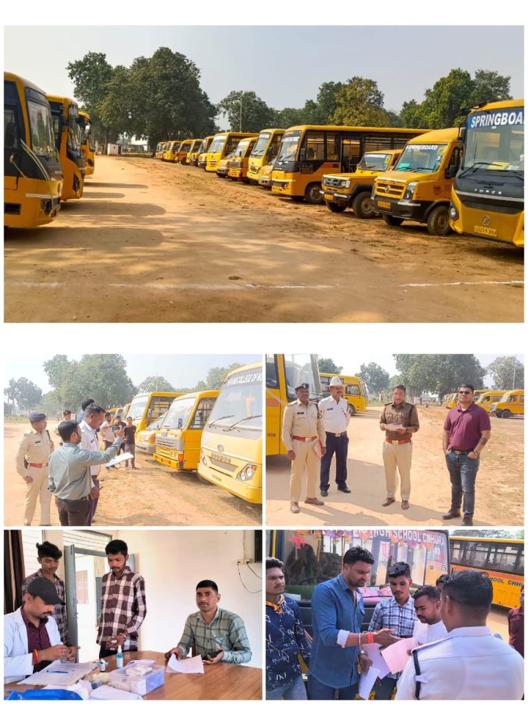 आज पुलिस लाइन गरियाबंद के ग्राउंड में आर टी ओ अधिकारी रविंद्र कुमार, स्वास्थ्य विभाग से डॉक्टर विपिन बिहारी अग्रवाल एवं पुलिस टीम थाना प्रभारी गरियाबंद निरीक्षक ओम प्रकाश यादव,यातायात प्रभारी एएसआई रामाधार मरकाम के द्वारा गरियाबंद में संचालित स्कूल बसों को तलब कर निरीक्षण किया गया। साथ ही सभी वाहनो का दस्तावेज चेक कर वाहन चालको एवं कंडेकटरों का बी.पी., सुगर के साथ आँखों का टेस्ट किया गया सभी को थाने में चरित्र सत्यापन करवाने एवं संबंधित स्कूल का आई कार्ड रखने के संबंध में समसाईस के साथ निर्देश दिया गया।