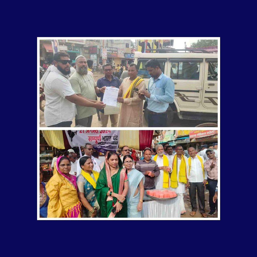 गरियाबंद । सुप्रीम कोर्ट द्वारा दिये निर्णय अनुसार scst आरक्षण में कोटा के अंदर सब कोटा यानी क्रीमीलेयर के तहत आरक्षण के निर्धारण का निर्णय दिया गया है जिसके विरोध् में एससीएसटी परिसंघ ने आज 21अगस्त को भारत बंद का आयोजन रखा था जिसके तहत आज scst तबके के सैकड़ों लोगो ने गरियाबंद स्थित तिरंगा चौक में एक दिवसीय धरना दिया और अपने मांगों को लेकर नारे बाजी की इस आंदोलन को गरियाबंद सुन्नी मुस्लिम जमात ने भी समर्थन पत्र देकर इनकी जायज मांगों के समर्थन में धरना स्थल पर पहुंचे और दूर दूर से पहुंचे प्रदर्शन कारियों को समाज की तरफ से युवाओं ने शरबत वितरण किया।