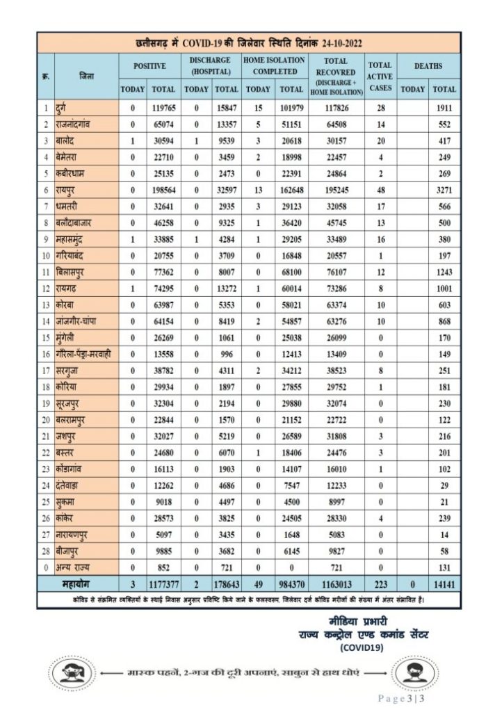 Share Facebook Twitter WhatsApp Telegram रायपुर। स्वास्थ्य विभाग द्वारा जारी बुलेटिन मे महासमुंद,बालोद,रायगढ़ मे एक-एक कर कुल तीन कोरोना मरीज पिछले शाम तक मिले इस तरह राज्य मे अब तक 223 सक्रिय मरीज है Whatsapp Share Post Share