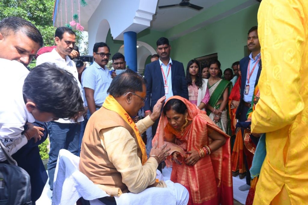 जन्मदिन के अवसर पर मुख्यमंत्री श्री विष्णु देव साय की धर्मपत्नी श्रीमती कौशल्या देवी साय ने आरती कर उन्हें जन्मदिन की शुभकामनाएं दीं