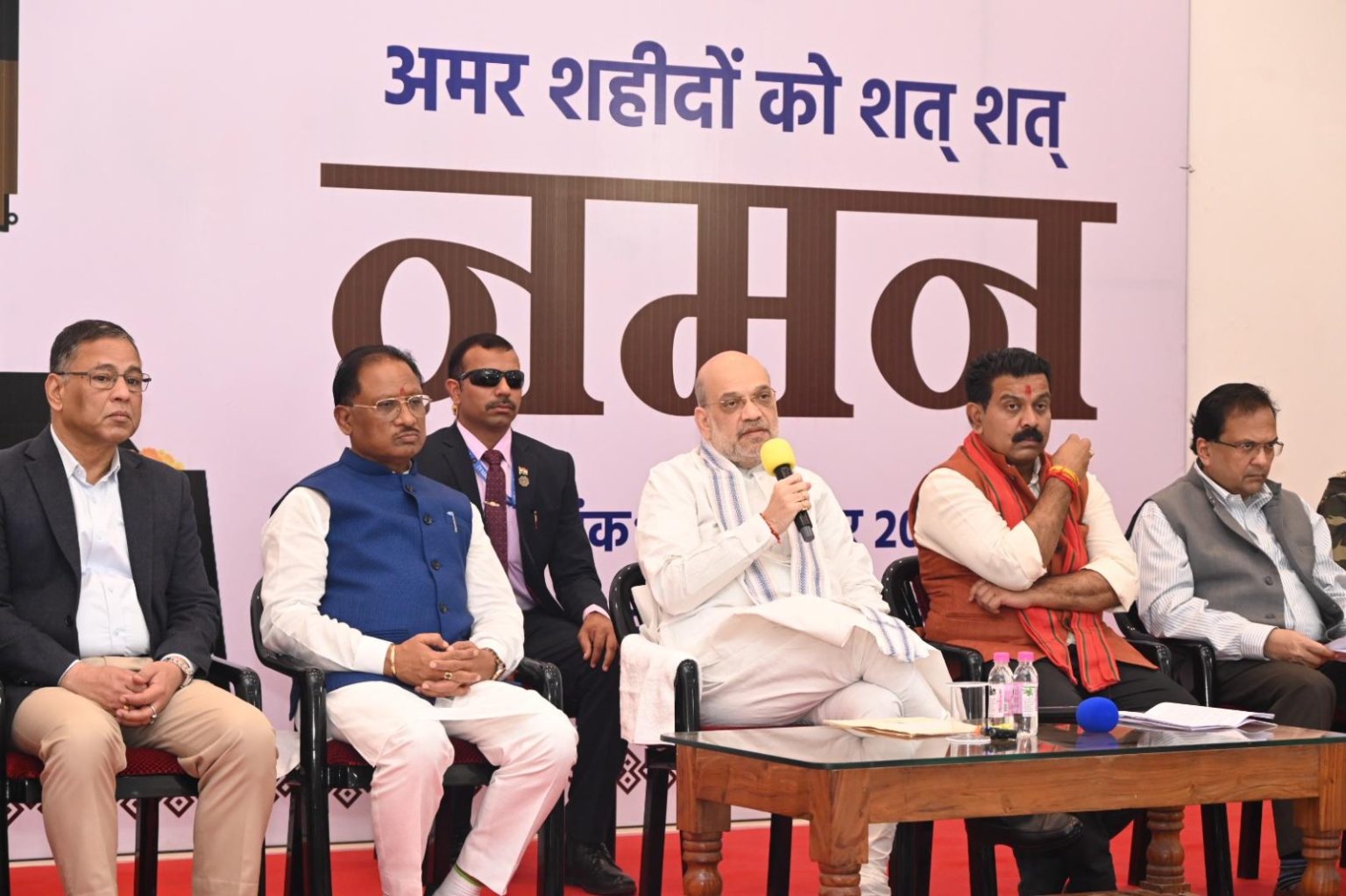 केंद्रीय गृह मंत्री श्री शाह ने कहा कि भारत सरकार की सुरक्षा एजेंसियां और पुलिस के जवान मजबूती के साथ नक्सल मोर्चे पर काम कर रहे हैं। पिछले एक साल की सटीक रणनीति से नक्सलवाद का दायरा सिमटा है और ढेर सारे विकास के कार्यों को गति देने के लिए चरणबद्ध तरीके से काम किया जा रहा है। छत्तीसगढ़ में नक्सल उन्मूलन अभियान को केंद्र सरकार का पूरा समर्थन और सहयोग मिल रहा है। उन्होंने कहा कि नक्सल उन्मूलन के लिये सरकार तीनों मोर्चाे पर काम कर रही है। माओवादी उग्रवाद का रास्ता छोड़कर आत्म सर्मपण करने वालों का स्वागत किया जा रहा है। नक्सल अभियान के दौरान उन्हें गिरफ्तार भी किया जा रहा है और जो दूसरे की जान लेने पर आमादा हैं, उन्हें उन्हीं की भाषा में जवाब दिया जा रहा है।