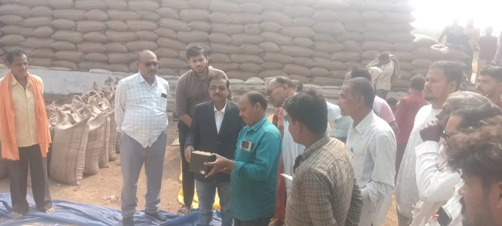 रायपुर। आज संभागायुक्त रायपुर संभाग रायपुर श्री महादेव कावरे बालोदबाज़ार-भाटापारा जिले के धान खरीदी केंद्र सिमगा पहुँच कर धान खरीदी की निरीक्षण किया ।आज काफ़ी संख्या मैं किसान धान बेचने आ रहे हैं उनसे संभागायुक्त ने बात की । केंद्र में अब तक ५९०० क्विंटल धान खरीदी की गई है, जिसकी राशि १ करोड़ ३५ लाख ७४ हज़ार १४४ रुपए है । संभागायुक्त द्वारा बारदाना, इलेक्ट्रॉनिक तौल मशीन, सीसीटीवी कैमरा, पानी की व्यवस्था, डैनेज़ और अन्य आवश्यक सुविधाओं की जानकारी ली, उपस्थित एसडीएम और प्रबंधक को किसानों के लिए टॉयलेट की सुविधा देने, नया पुराना बारदाना ५०:५०% उपयोग करने, धान स्टाकिंग ठीक से कराने, पानी की निकासी की व्यवस्था देखने, किसानो के भुगतान की व्यवस्था देखने के निर्देश दिये । निरीक्षण के समय प्रबंधक ने आज के लिए २८ टोकन कटना, ५६३१ नया बारदाना और ५६३१ पुराना बारदाना, ५ इलेक्ट्रॉनिक तौल काटा उपलब्ध होने की जानकारी दी गई । निरीक्षण दौरान एसडीएम सिमगा श्री अंशुल वर्मा , प्रबंधक सेवा सहकारी समिति मंजुला शर्मा सहित अन्य अधिकारी उपस्थित थे ।