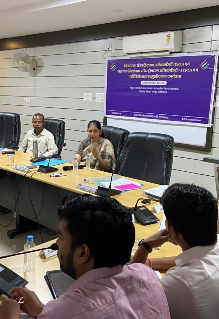 रायपुर, 22 मई 2023/ भारत निर्वाचन आयोग के निर्देशानुसार कार्यालय मुख्य निर्वाचन पदाधिकारी कार्यालय छत्तीसगढ़ द्वारा प्रदेश के निर्वाचक रजिस्ट्रीकरण अधिकारियों एवं सहायक निर्वाचक रजिस्ट्रीकरण अधिकारियों का सर्टिफिकेशन तथा उन्मुखीकरण प्रशिक्षण कार्यक्रम 20 तथा 21 मई 2023 को ठाकुर प्यारेलाल राज्य पंचायत एवं ग्रामीण विकास संस्थान निमोरा में आयोजित किया गया। इसमें प्रदेश के सभी निर्वाचक रजिस्ट्रीकरण अधिकारियों एवं सहायक निर्वाचक रजिस्ट्रीकरण अधिकारियों ने भाग लिया। प्रशिक्षण में सभी अधिकारियों को निर्वाचक नामावली तैयार करने से संबंधित संवैधानिक और कानूनी प्रावधानों के बारे में विस्तार से जानकारी दी गई।