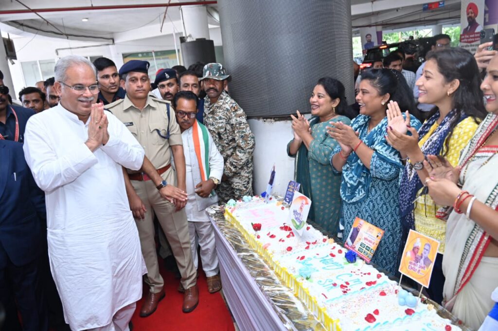 मुख्यमंत्री श भूपेश बघेल ने अपने जन्मदिन के अवसर पर मल्टीलेवल पार्किंग में डेढ़ सौ फीट की लंबाई वाला केक काटा।