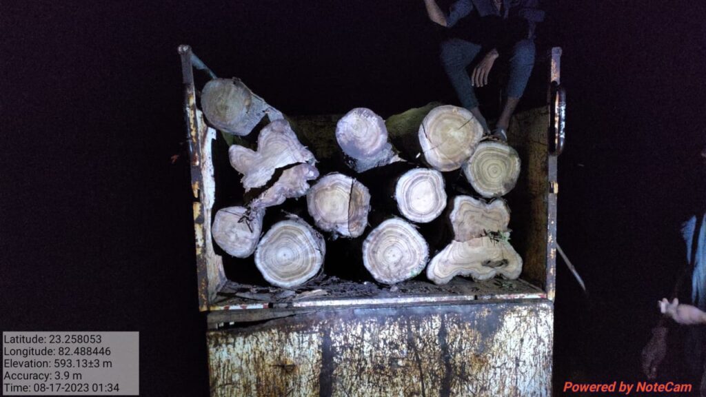 वन विभाग की कार्यवाही में भारी मात्रा में सागौन लकड़ी और वाहन जप्त