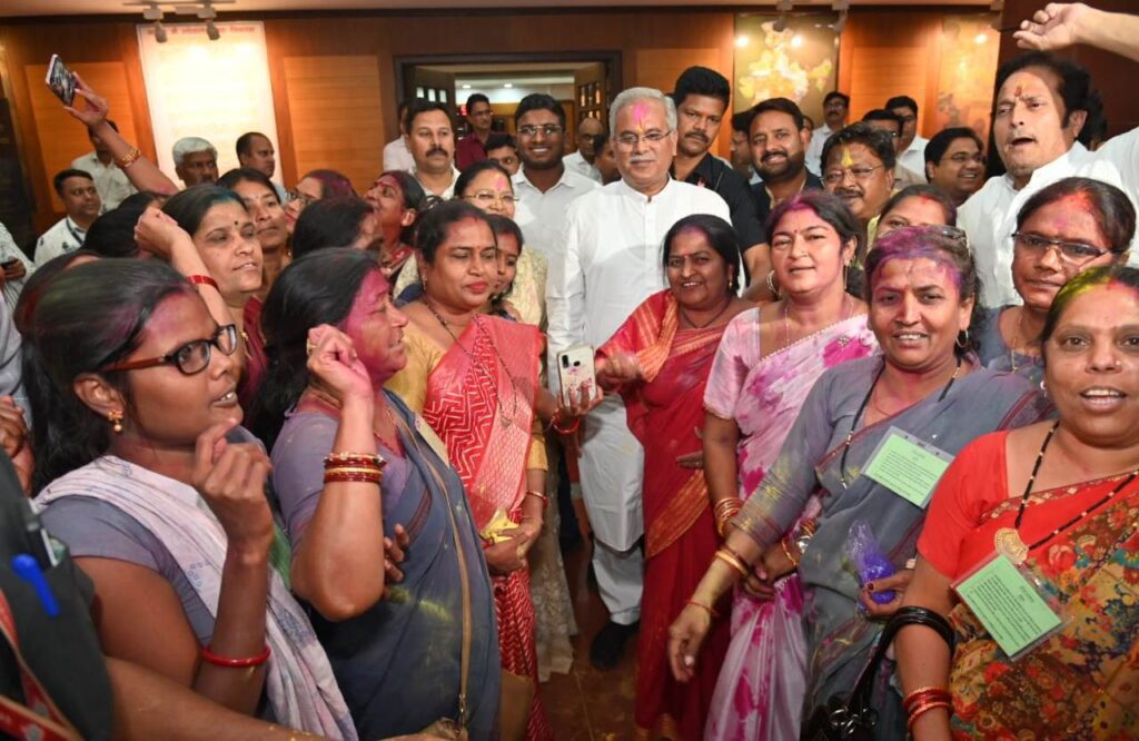 रायपुर 07 मार्च 2023/मुख्यमंत्री श्री भूपेश बघेल से आज यहां छत्तीसगढ़ विधानसभा परिसर स्थित सेंट्रल हॉल में आंगनबाड़ी कार्यकर्ताओं-सहायिकाओं के प्रतिनिधि मण्डल ने मुलाकात कर ‘भरोसे के बजट‘ में उनका मानदेय बढ़ाये जाने पर मुख्यमंत्री के प्रति आभार जताया। मानदेय वृद्धि की खबर सुनकर मुख्यमंत्री का आभार जताने बड़ी संख्या में आंगनबाड़ी कार्यकर्ता-सहायिका विधानसभा पहुंची इन महिलाओं के चेहरे पर खुशी साफ जाहिर हो रही थी। महिलाओं ने मुख्यमंत्री को बताया कि उनकी बहुप्रतीक्षित मांग पूरी होने से आज प्रदेश भर में आंगनबाड़ी कार्यकर्ताओं-सहायिकाओं का होली पर्व का उल्लास दोगुना हो गया है। प्रदेश भर की आंगनबाड़ी से जुड़ी महिलाओं में हर्ष की लहर है।