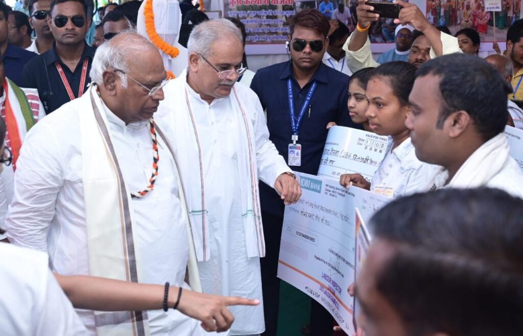 रायपुर, 13 अगस्त 2023/ जांजगीर-चाम्पा जिले में आज आयोजित भरोसे के सम्मेलन में जहाँ जिलेवासियों को 467 करोड़ 32 लाख रुपए के विकास कार्यों की सौगात मिली, वही जिले के बेरोजगार, जरूरतमंद हितग्राहियों को रोजगार, आत्मनिर्भर होने और अपने पैरों में खड़े होने का अवसर भी मिला। मुख्य अतिथि नेताप्रतिपक्ष राज्यसभा और सांसद श्री मल्लिकार्जुन खड़गे तथा मुख्यमंत्री श्री भूपेश बघेल के हाथों हितग्राहियों को अनेक योजनाओं के अंतर्गत सामग्रियां वितरित की गई। भरोसे के सम्मेलन में योजनाओं से लाभान्वित होने वाले हितग्राहियों ने कहा कि यह उनके सुनहरे भविष्य का एक मजबूत भरोसा है। मुख्यमंत्री श्री भूपेश बघेल ने हम गरीबों का ध्यान रखा, उसके लिए हितग्राहियों ने आभार भी जताया।