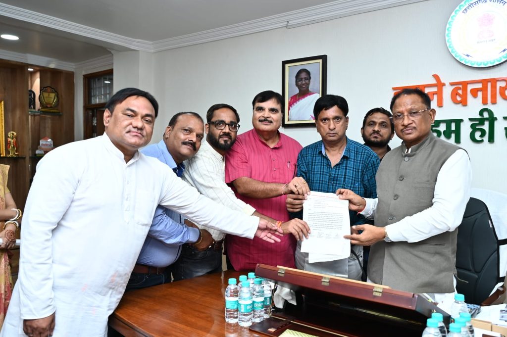 कर्मचारी अधिकारी संयुक्त मोर्चा के प्रवक्ता संजय तिवारी ने बताया कि संयुक्त मोर्चा ने मुख्य सचिव को अल्टीमेटम देकर 9 सितंबर को हड़ताल की घोषणा की थी। जिसे संज्ञान में लेते हुए संयुक्त मोर्चा के 5 प्रतिनिधियों को संक्षिप्त सूचना देकर मुख्यमंत्री निवास बुलाया गया था। जिस पर छत्तीसगढ़ कर्मचारी अधिकारी संयुक्त मोर्चा के प्रतिनिधि मंडल में शामिल प्रतिनिधियों में छत्तीसगढ़ कर्मचारी अधिकारी महासंघ के प्रांतीय संयोजक अनिल शुक्ला, मंत्रालयीन कर्मचारी संघ के अध्यक्ष महेंद्र सिंह राजपूत, लिपिक वर्गीय शासकीय कर्मचारी संघ के उप प्रांताध्यक्ष भोलाराम किर, प्रदेश स्वास्थ कर्मचारी संघ के प्रांताध्यक्ष आलोक मिश्रा एवं शिक्षक संगठन से नरेंद्र सिंह ठाकुर के साथ प्रदेश के मुख्यमंत्री विष्णुदेव साय से ज्ञापन पर सकारात्मक चर्चा हुई।