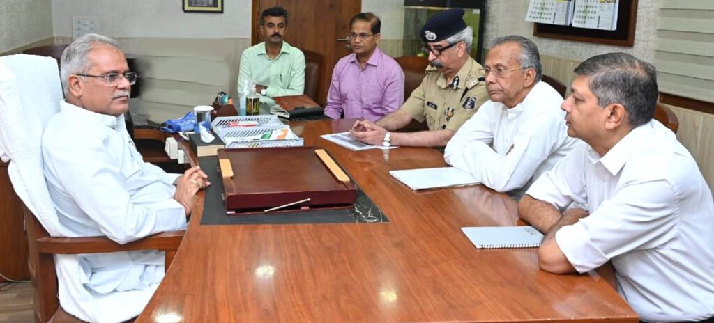 इस आपातकालीन बैठक में गृह मंत्री श्री ताम्रध्वज साहू, मुख्य सचिव श्री अमिताभ जैन, पुलिस महानिदेशक श्री अशोक जुनेजा, मुख्यमंत्री के सचिव श्री अंकित आनंद, पुलिस महानिरीक्षक गुप्तवार्ता श्री अजय यादव उपस्थित रहे।