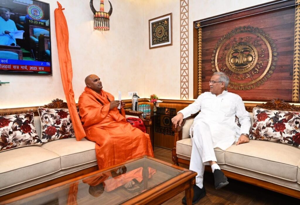 मुख्यमंत्री से शंकराचार्य स्वामी आत्मानंद सरस्वती ने की सौजन्य मुलाकात
