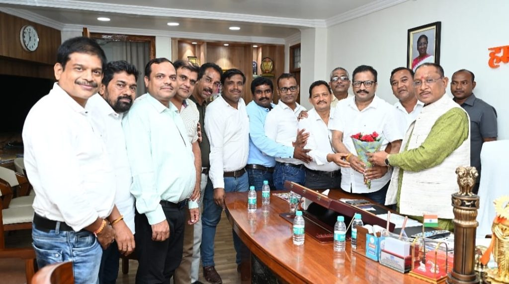 माननीय मुख्यमंत्री जी से मुलाकत करने वाले प्रतिनिधिमण्डल में प्रदेश अध्यक्ष संजय शर्मा, सुधीर प्रधान, देवनाथ साहू, बसंत चतुर्वेदी, मनोज सनाढ्य, शैलेंद्र पारीक, योगेश सिंह ठाकुर, जितेंद्र मिश्रा, नारायण चौधरी, संतोष सिंह, भूषण लाल चंद्राकर, गोपाल जायसवाल, नंदकुमार साहू, प्रदीप वर्मा, सालिकराम साहू, देवेंद्र चंद्राकर, नवधा चंद्रा, रवि कुम्भकार, परमेश्वर चंद्रा, गेवाराम नेताम, कैलाश साहू, राहुल नेताम, बलराम तारम, आशीष नायक शामिल थे।