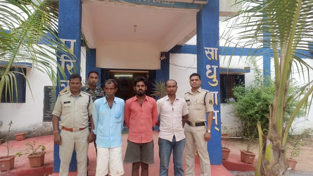 मामले की गंभीरता को देखते हुए वरिष्ठ पुलिस अधीक्षक श्री अमित तुकाराम कांबले के दिशा.निर्देश तथा अतिरिक्त पुलिस अधीक्षक श्री चंन्द्रेश ठाकुर के मार्गदर्शन,अनुविभागीय अधिकारी पुलिस मैनपुर श्री अनुज कुमार के नेतृत्व में थाना प्रभारी मैनपुर हमराह स्टाफ के आरोपीयों के पतासाजी पर रवाना हुआ था पतासाजी दौरान संदेही 01) सरजु चक्रधारी पिता ठेलसिंह चक्रधारी उम्र 52 साल 02) चित्रकुमार चक्रधारी पिता सरजु चक्रधारी उम्र 25 साल 03) टेकराम गाड़ा पिता सुनाराम गाड़ा उम्र 29 साल निवासी ग्राम कोसमी को पकड़कर पुलिस अभिरक्षा में लेकर घटना के संबंध में पुछताछ किये तीनो संदेहियों द्वारा अपना अपराध स्वीकार किये । अपराध में प्रयुक्त लकड़ी का डण्डा व लोहे का राड को आरोपीयों के निशानदेही पर जप्त किया गया । प्रकरण केआरोपीयों को विधिवत गिरफ्तार कर न्यायिक रिमाण्ड पर भेजा गया।
