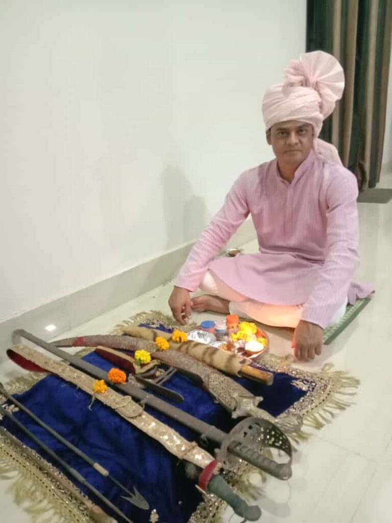 विजयादशमी पर पेण्ड्रा के पूर्व जमींदार परिवार में परंपरागत तरीके से शस्त्रों का पूजा अर्चना किया गया