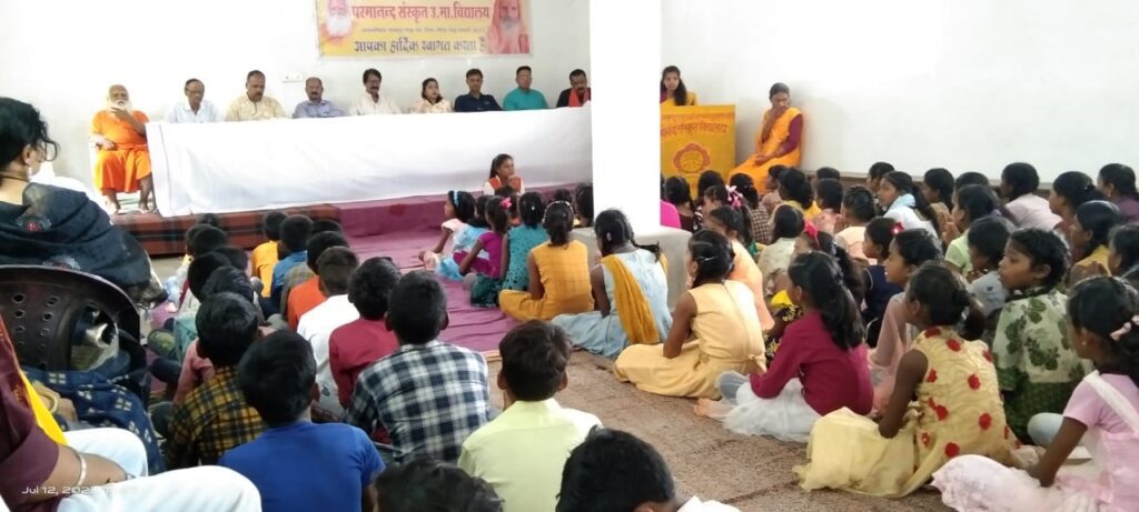 अध्यक्ष डॉ सुरेश शर्मा ने संस्कृत के महत्व को बताते हुए कहा कि संस्कृत में ही वर्तमान छात्रों का भविष्य उज्जवल है। हम सबको संस्कृत का अध्ययन करना चाहिए। हमारे सभी पौराणिक ग्रंथ संस्कृत भाषा में ही हैं। भारतीय वेदों में जो विज्ञान भरा पड़ा है उसे धरातल पर लाने के लिए संस्कृत पढ़ना अनिवार्य है। आज विदेशों में संस्कृत भाषा अनिवार्य विषय के रूप में पढ़ाया जा रहा है। वहीं लक्ष्मण साहू ने भी सभी संस्कृत छात्रों को प्रवेश उत्सव की शुभकामनाएं देते हुए संस्कृत की प्रासंगिकता पर प्रकाश डाला। सभी आगंतुकों ने भी छात्रों को तिलक लगाकर विद्यालय में स्वागत किया। संस्था के संस्थापक आचार्य स्वामी परमात्मानंद महाराज ने भी सभी नवप्रवेशी छात्रों को शुभाशीष प्रदान कर सभी अतिथियों का आभार ज्ञापन करते हुए कार्यक्रम के समाप्ति की घोषणा की।