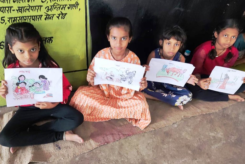 कहीं दीवारों पर तो कहीं किताबों पर नन्हे हाथों से ड्राइंग करते दिखाई दे रहे हैं बच्चे। कोई गा रहा है, कोई डांस कर रहा है और कोई अभिनय। पत्तों से कलाकारी, सब्जियों से चित्रकारी, रंगीन चावल की कला, मिट्टी से खिलौना निर्माण, धागे से डिजाइन बनाना और मुखौटा निर्माण जैसी रोचक गतिविधियों में बच्चे डूबे हुए हैं। अलग-अलग भाव के साथ बच्चों के चेहरे पर विजय मुस्कान दिखाई दे रही है।