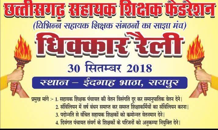 इतनी बड़ी संख्यां कों अन्य लोग भीड़ और चंदा बाजी के लियॆ इस्तेमाल कर रहे छत्तीसगढ़ के 30 हजार के आसपास के संख्यां बल अब अपने बीच से नेतृत्व पैदा कर पुनः नये जोश के साथ सहायक शिक्षक की लड़ाई लड़ेगा जिसकी शुरुआत गरियाबंद जिले से किया जाएगा इस संबंध में रायपुर में शीघ्र बड़ी बैठक आयोजित कर संगठनात्मक रूप रेखा और विसंगति की लड़ाई लड़ी जाएगी।