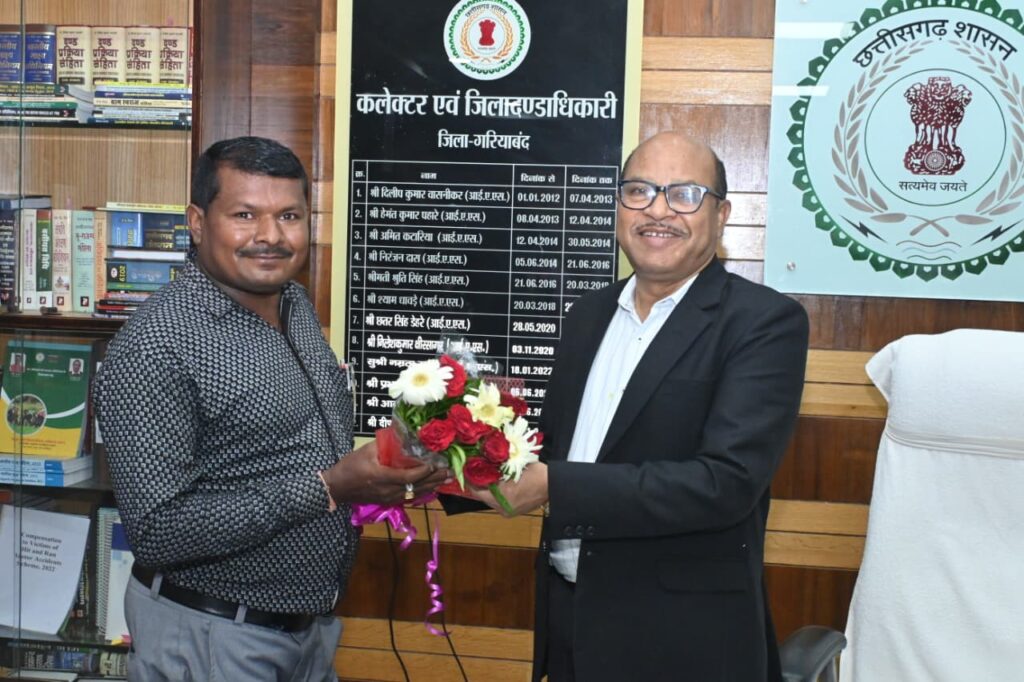 गरियाबंद, 24 नवम्बर 2025/ विशेष गहन पुनरीक्षण 2025 के अंतर्गत मतदाता सूची के शुद्धिकरण तथा नए मतदाताओं के पंजीयन कार्य में गणना पत्र प्रदान करने एवं गणना पत्रों को डिजिटाइज़ करने जैसे उत्कृष्ट कार्य करने वाले बी.एल.ओ. श्री कन्हैया लाल साहू को आज कलेक्ट्रेट कक्ष में सम्मानित किया गया। कलेक्टर एवं जिला निर्वाचन अधिकारी श्री भगवान सिंह उइके ने प्राथमिक शाला भवन, टेका (ब), भाग क्रमांक 198, विधानसभा क्षेत्र राजिम (क्रमांक 54) के बीएलओ श्री कन्हैया लाल साहू को गुलदस्ता एवं प्रशस्ति पत्र प्रदान कर सम्मानित किया। जिला निर्वाचन कार्यालय द्वारा आयोजित इस सम्मान समारोह में इन्युमिरेशन फार्म भरने, सत्यापन करने तथा नामांकन प्रक्रिया में सक्रियता से कार्य करने वाले कार्मिकों की सराहना की गई। जिला निर्वाचन अधिकारी श्री उइके ने कहा कि निष्पक्ष और अद्यतन मतदाता सूची लोकतंत्र की आधारशिला है और इस महत्वपूर्ण कार्य को निष्ठा एवं जिम्मेदारी के साथ पूरा करने वाले अधिकारी-कर्मचारी वास्तव में प्रशंसा के पात्र हैं। उन्होंने उत्कृष्ट कार्य करने वाले विकासखण्ड फिंगेश्वर के ग्राम पंचायत टेका के बीएलओ श्री कन्हैया लाल साहू के भविष्य के लिए शुभकामनाएँ देते हुए कहा कि आगामी विधानसभा निर्वाचन को सुचारू एवं सफलतापूर्वक संपन्न कराने में ऐसे समर्पित कर्मचारियों की भूमिका अत्यंत महत्वपूर्ण रहेगी।