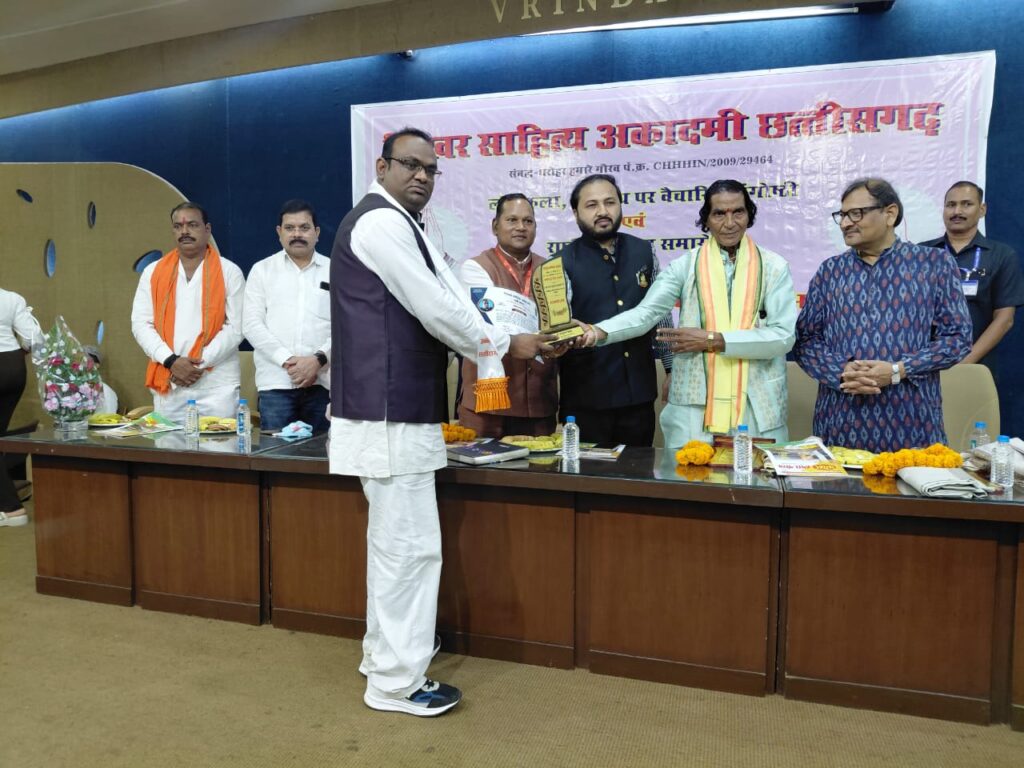 शिखर साहित्य अकादमी छत्तीसगढ़ द्वारा 1 सितंबर वृंदावन हॉल रायपुर मे आयोजित राष्ट्रीय सम्मान कार्यक्रम- 2025 में स्वामी आत्मानंद उत्कृष्ट हिंदी/ अंग्रेजी विद्यालय उच्चतर माध्यमिक विद्यालय बेलतरा के व्याख्याता मनोज कुमार महिलांगे को दिव्यांग कर्मचारी एवं अधिकारियों तथा दिव्यांग व्यक्तियों के हितों के लिए उल्लेखनीय कार्य करने तथा दिव्यांगजन सरकारी योजनाओं हम दिव्यांग व्यक्तियों के समक्ष पहुंचाने एवं प्रचार प्रसार करने के लिए मुख्य अतिथि के रूप में पधारे हुए बस्तर राजमहल के महाराजा कमलचंद्र भंजदेव, जिला पंचायत रायपुर के अध्यक्ष नवीन अग्रवाल विशिष्ट अतिथि ग्रुप में पधारे शकुंतला धीरेंद्र सेन धरसिवा जनपद पंचायत अध्यक्ष, दिनेश खूंटे उपाध्यक्ष जनपद पंचायत धरसींवा, सविता चंद्राकर सभापति जनपद पंचायत धरसिवा , ,पदम् श्री अनूप रंजन पांडे, पदम् श्री डोमल सिंह कुंवर एवं डॉ मन्नू लाल चेलक अध्यक्ष साहित्य अकादमी छत्तीसगढ़ के हाथों “छत्तीसगढ़ गौरव सम्मान -2025” सहित प्रशस्ति पत्र,स्मृति चिन्ह एवं अकादमी की पट्टीका प्रदान किया गया l इस सम्मान को प्राप्त करने के लिए स्कूल के प्राचार्य सहित समस्त स्टाफ, परिवार जनों, मित्रो, शुभचिंको सहित बेलतरा पंचायत के ग्रामीणो ने हर्ष व्यक्त किया है l