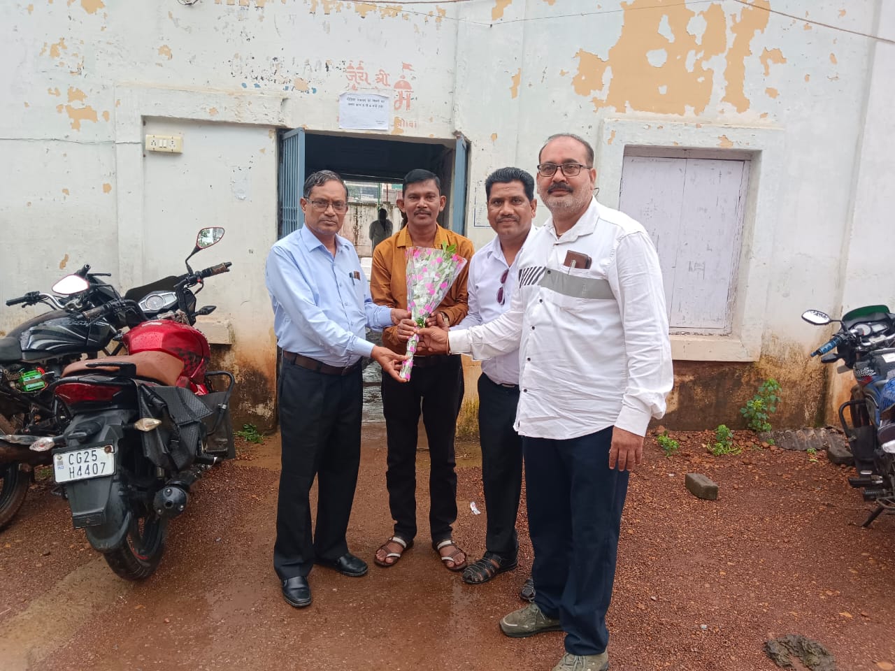 बेमेतरा जिला के नवपदस्थ जिला शिक्षा अधिकारी से सहायक शिक्षक / समग्र शिक्षक फेडरेशन के कार्यकारी प्रांताध्यक्ष श्री कौशल अवस्थी के नेतृत्व में नवपदस्थ जिला शिक्षा अधिकारी गैंदलाल चतुर्वेदी जी का फूलो की गुलदस्ता व मिठाई खिला कर स्वागत किया व नई जिम्मेदारी के लिए बधाई एवं शुभकामनाएं दिया गया। मुलाकात के दौरान हरिराम पात्रे व संतोष मिरे उपस्थित थे।