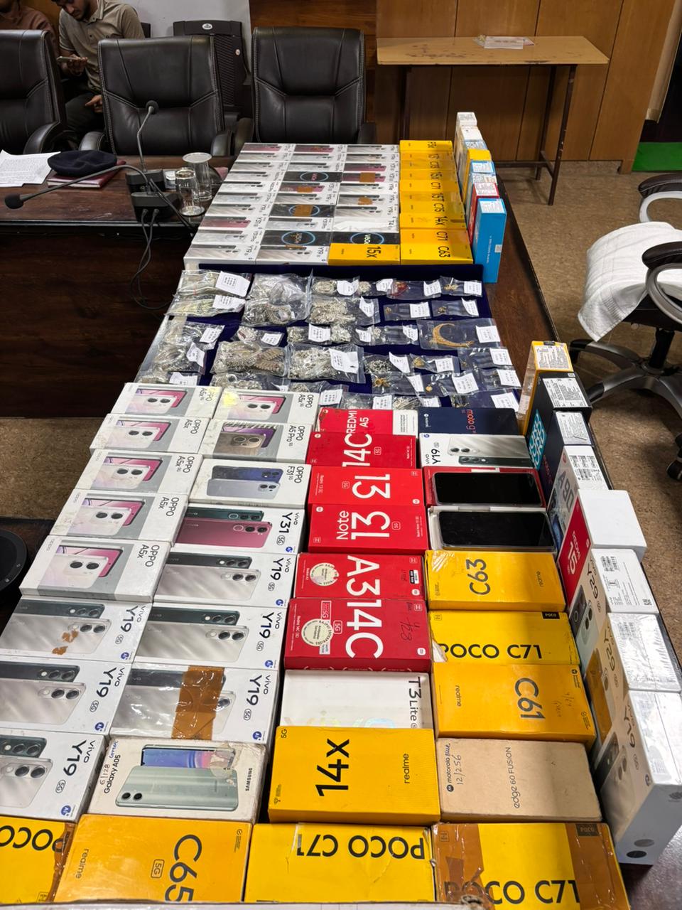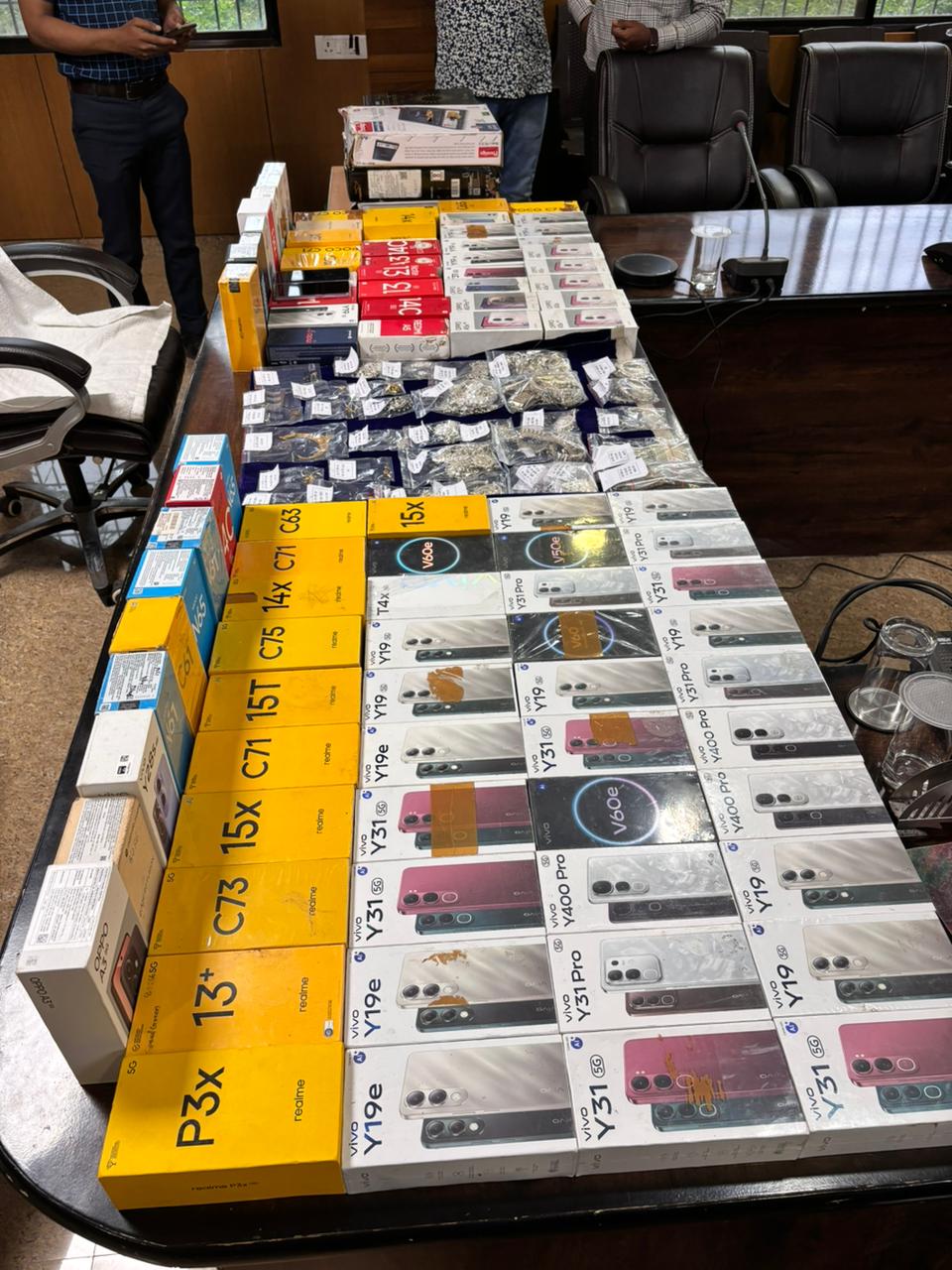 🔹 96 नग मोबाईल बरामद एवं सोना, चांदी के आभूषण/ मुर्तिया, नगदी रकम बरामद।