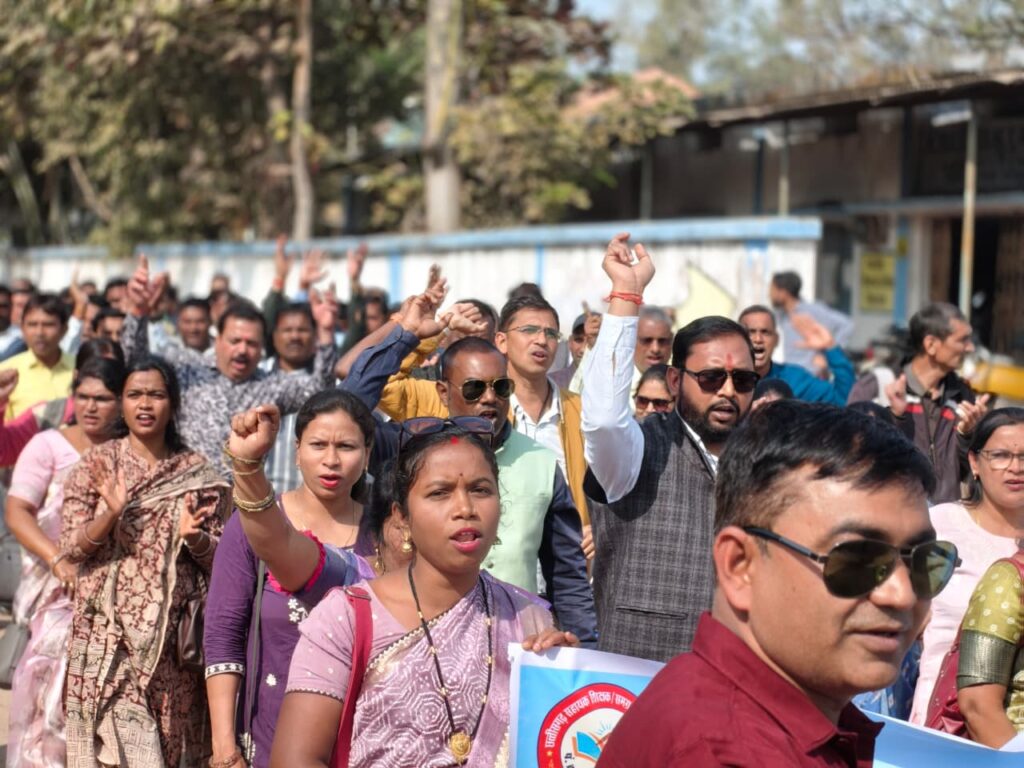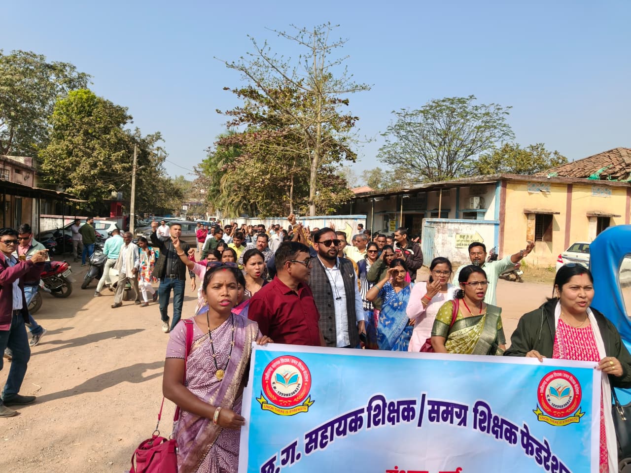 छत्तीसगढ़ सहायक शिक्षक/समग्र शिक्षक फेडरेशन का जंगी प्रदर्शन, संयुक्त संचालक दुर्ग का घेराव