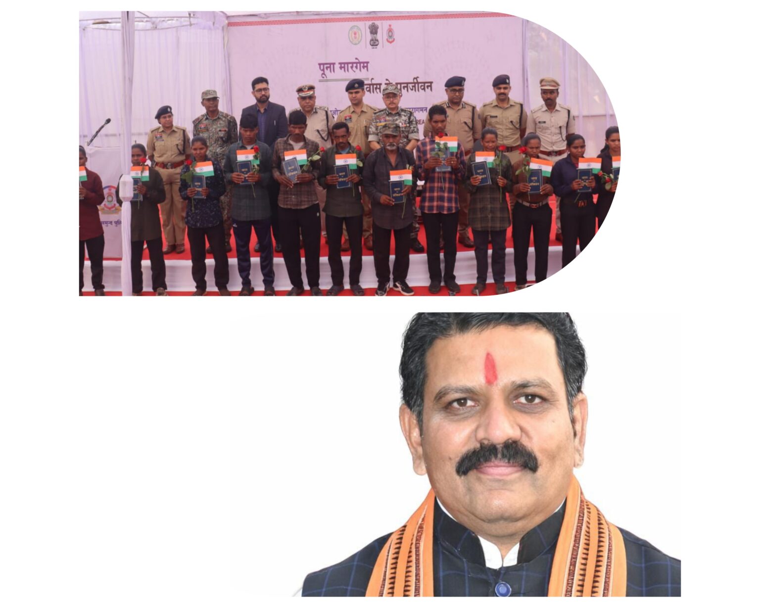 इस अवसर पर उपमुख्यमंत्री श्री शर्मा ने कहा कि छत्तीसगढ़ में नक्सलावाद केंद्रीय गृह मंत्री श्री अमित शाह द्वारा दिए गए समयावधि में यह समाप्त हो जाएगा। आज का पुनर्वास बहुत महत्वपूर्ण है, इसमें एक डिवीजन के पूरे बचे लोगों ने एक साथ पुनर्वास किया है, जो सराहनीय है। यह सब मुख्यमंत्री श्री विष्णुदेव साय के मार्गदर्शन में बनी दूरदर्शी पुनर्वास नीति से संभव हो सका है।