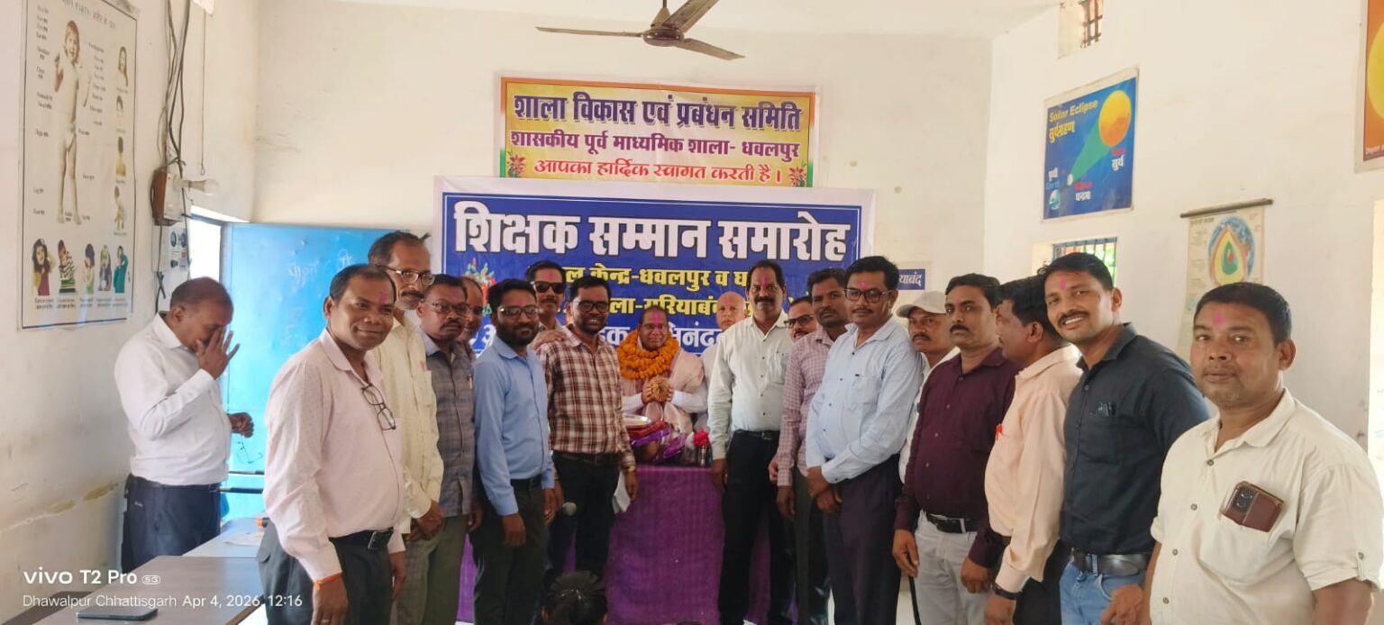 गरियाबंद। गरियाबंद ब्लॉक के संकुल केंद्र धवलपुर के माध्यमिक शाला जंगल धवलपुर के प्रधान पाठक विश्वनाथ भारद्वाज क़ो शिक्षकीय सेवा से सेवा निवृत होने पर संकुल केंद्र धवल पुर और संकुल केंद्र घटोंद के शिक्षकों के द्वारा बिदाई कार्यक्रम का आयोजन किया गया था वहीं दोनों संकुल से पदोन्नति प्राप्त शिक्षक जो प्रधान पाठक के पद पर पदोन्नत होकर अन्यत्र पदस्थ हुये है उनका संकुल परिवार कीं ओर से सम्मान कर भेंट प्रदान किये गये।