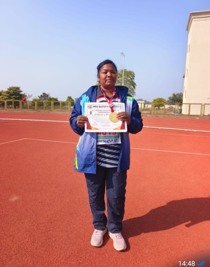 जबलपुर में 13 से 15 फरवरी 2026 तक आयोजित 45वीं राष्ट्रीय मास्टर एथलेटिक्स चैम्पियनशिप में शासकीय शाला नवापारा, विकासखण्ड पत्थलगांव, जिला जशपुर की सहायक शिक्षक श्रीमती रीता भगत (प्रधान पाठक) ने डिस्कस थ्रो प्रतियोगिता में स्वर्ण पदक प्राप्त कर छत्तीसगढ़ राज्य एवं शिक्षक समाज का नाम रोशन किया।