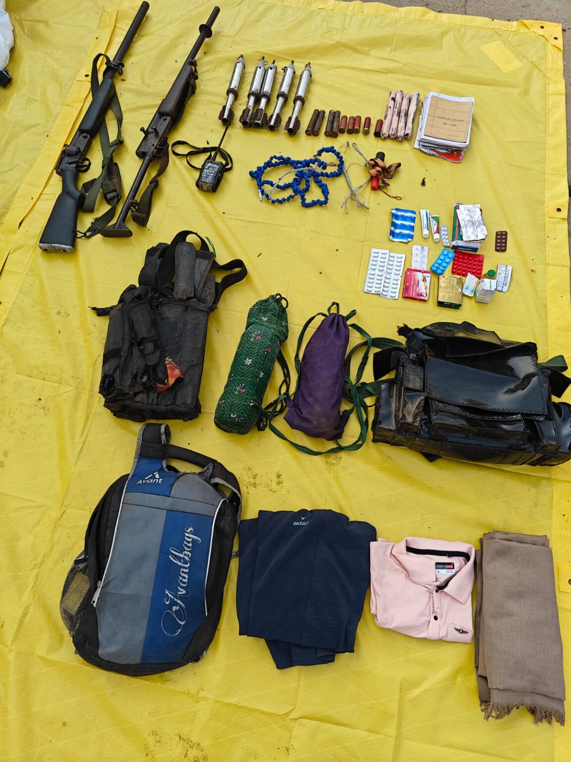 ⚫️ *मुठभेड़ समाप्ति उपरांत सभी टीमों द्वारा सर्च करने पर 02 (01 महिला, 01 पुरूष) हार्डकोर माओवादियों का शव हथियार सामग्री सहित बरामद हुआ।*