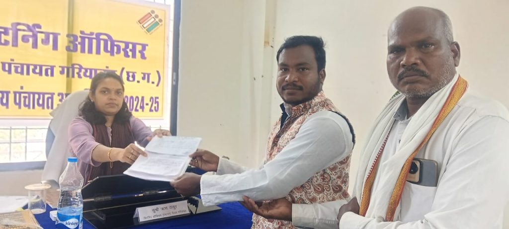 गरियाबंद जिला पंचायत क्षेत्र क्रमांक 07से गरियाबंद ब्लॉक से कांग्रेस के युवा प्रत्याशी गोपाल नेताम ने आज जिला निर्वाचन कार्यालय मे रिटर्निंग ऑफिसर अपर कलेक्टर ऋचा ठाकुर के पास अपना नाम निर्देशन पत्र दाखिल किया